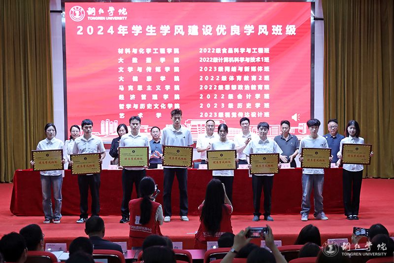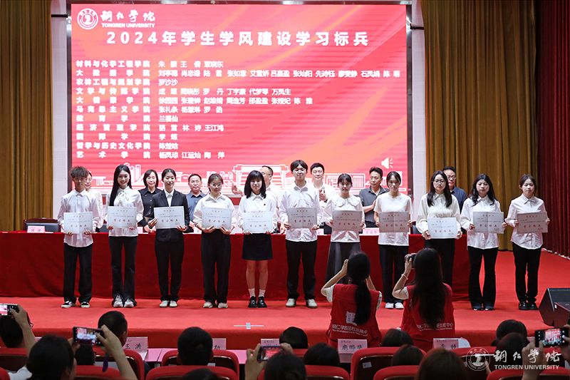 接着,党委学工部部长张钱宣读了《bv伟德国际1946关于表彰2024年学生学风建设先进集体和先进个人的决定》;出席会议的领导为获表彰的集体和个人进行了颁奖。本次表彰,共有40名学生荣获“学习标兵”称号,8个班级荣获“优良学风班级”称号,4个二级学院荣获“先进集体”称号。