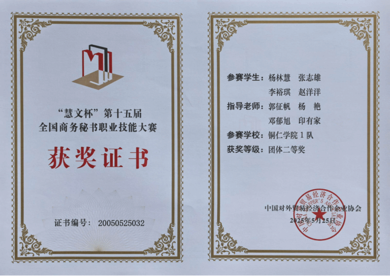 5月25日,由中国对外贸易经济合作企业协会主办,云南能源职业技术学院、全国商务秘书与行政助理专家委员会承办的第十五届全国商务秘书职业技能大赛圆满落下帷幕。本届大赛共有来自全国21个省、自治区、直辖市的66所本专科院校94支代表队376名选手同台竞技,共展秘书学子风采。伟德官网参赛队在此次大赛中表现突出,荣获多个奖项。