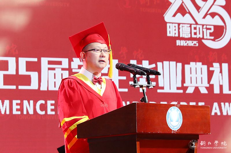 典礼上,石维致辞。他说,大学生活,是人生最灿烂的青春记忆。这几年,同学们在图书馆里品味文韵书香、在明德湖畔畅想人生、在时光长廊中驻足沉思、在运动场上挥洒激情、在实验室里求真问道,从一个懵懂的少年成长为学会独立、懂得思考、敢于探索的有为青年,书写了属于自己的青春故事。他希望同学们带着母校“苦心励志·追求卓越”的明德印记,敢于筑梦、勇于追梦、勤于圆梦,在祖国的万里长空放飞青春梦想。他勉励同学们,以梦为马,用家国情怀筑梦;以梦为马,用使命担当追梦;以梦为马,用奋斗精神圆梦。他祝愿同学们在人生的新征程上,以家国为坐标,锚定梦想的方向;以担当为风帆,激荡时代的浪潮;以奋斗为底色,绘就青春的画卷;以学习为双翼,飞向更远的星辰大海。
