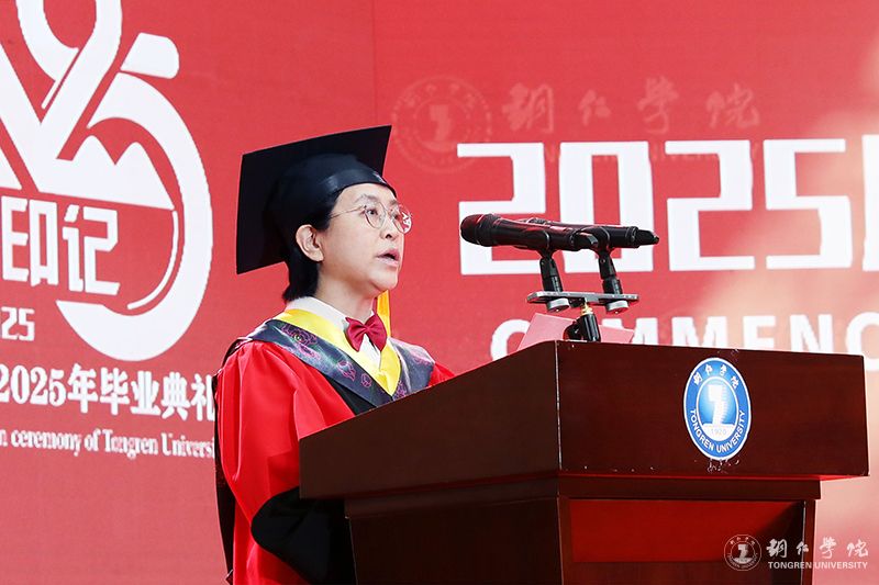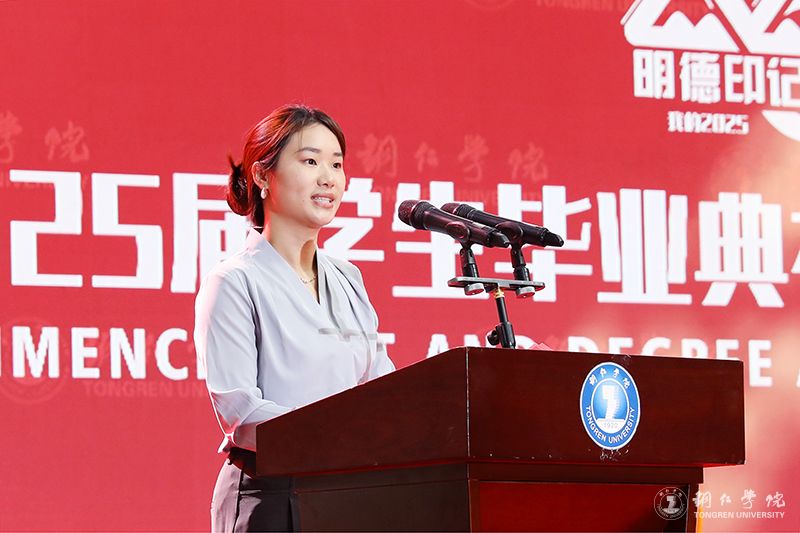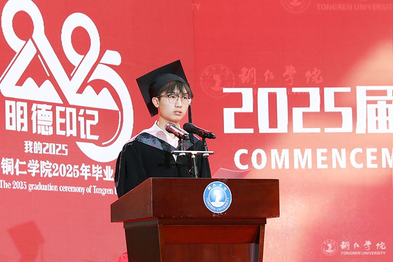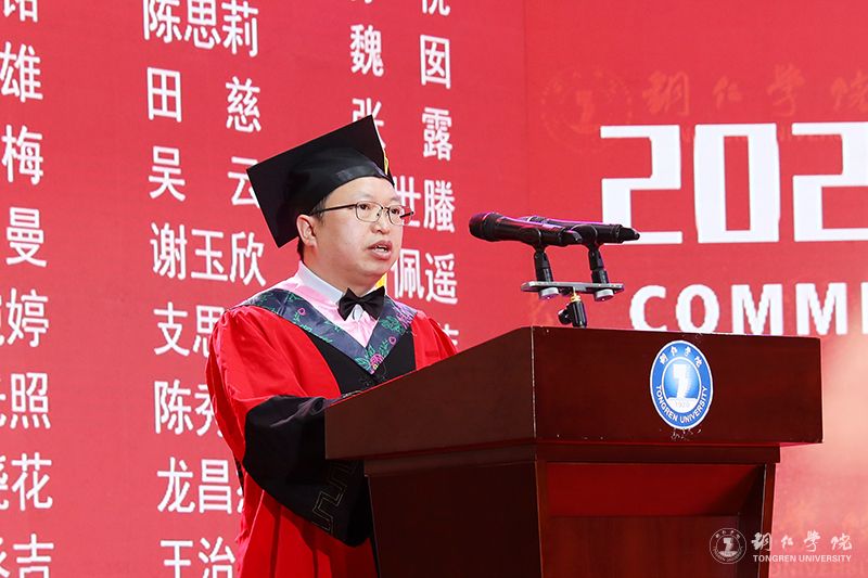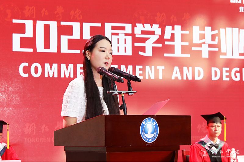 教师代表、材料与化学工程学院教师陈静发言说,大学四年,同学们在这片土地上完成了从“求知者”到“追光者”的蜕变,用一言一行践行着“明德·致用”的校训,在“苦心励志·追求卓越”的大学精神中淬炼品格,在自我成长的同时,也见证和参与了学校的成长。希望同学们带上“持续学习的能力、情绪控制的能力、人心向善的坚守”这三件“终身装备”,从教育园区启航路238号,驶向更广阔的天地。