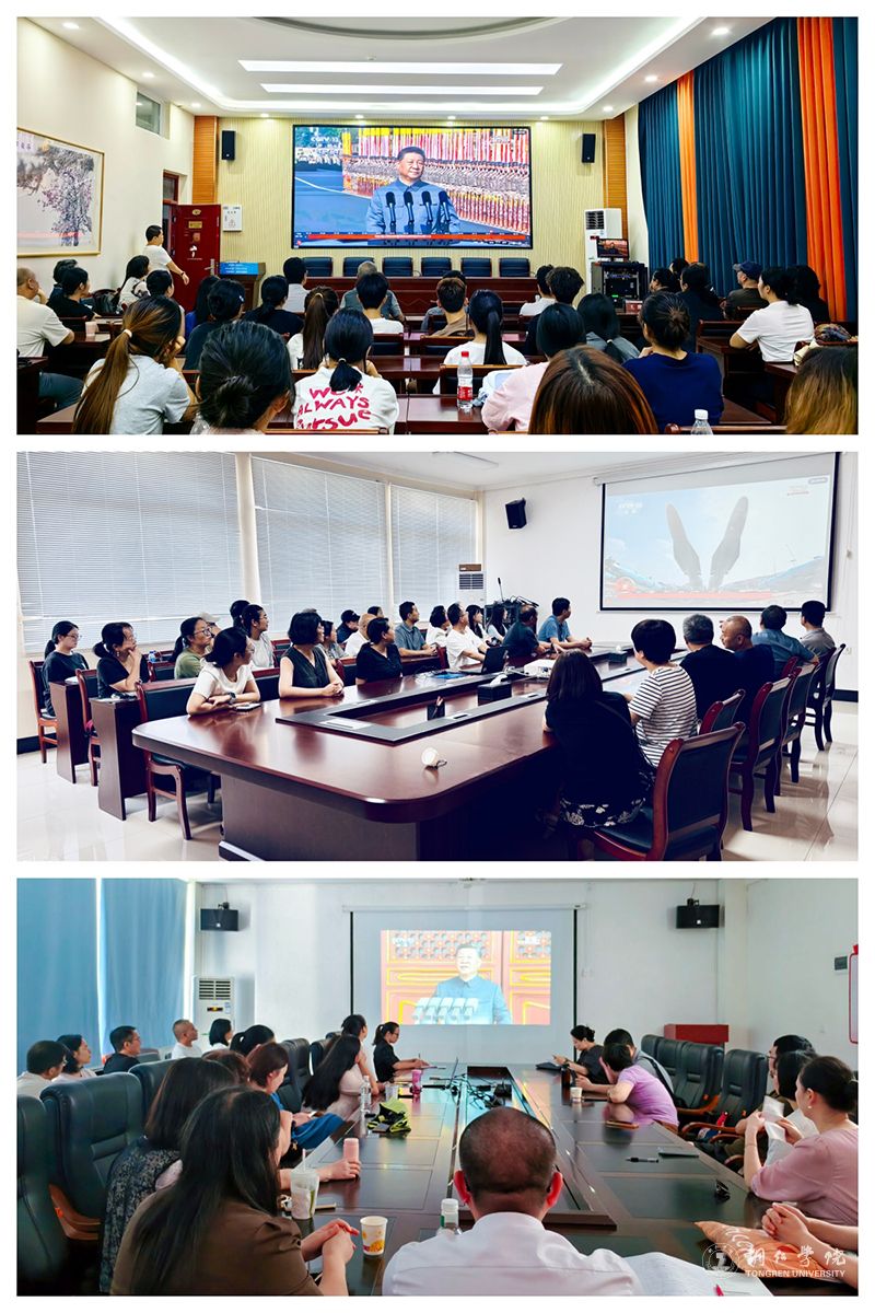 收看了大会直播,师生们表示非常震撼人心,也倍感骄傲与自豪。大家说,要传承和弘扬伟大抗战精神,踔厉奋发、勇毅前行,为以中国式现代化全面推进强国建设、民族复兴伟业而团结奋斗;要深入实施新时代立德树人工程,扎实开展爱国主义教育,引导学生厚植家国情怀、激发学生爱国热情和奋进精神;要铭记历史、挺膺担当,将个人成长融入国家发展,为实现中华民族伟大复兴贡献青春力量。