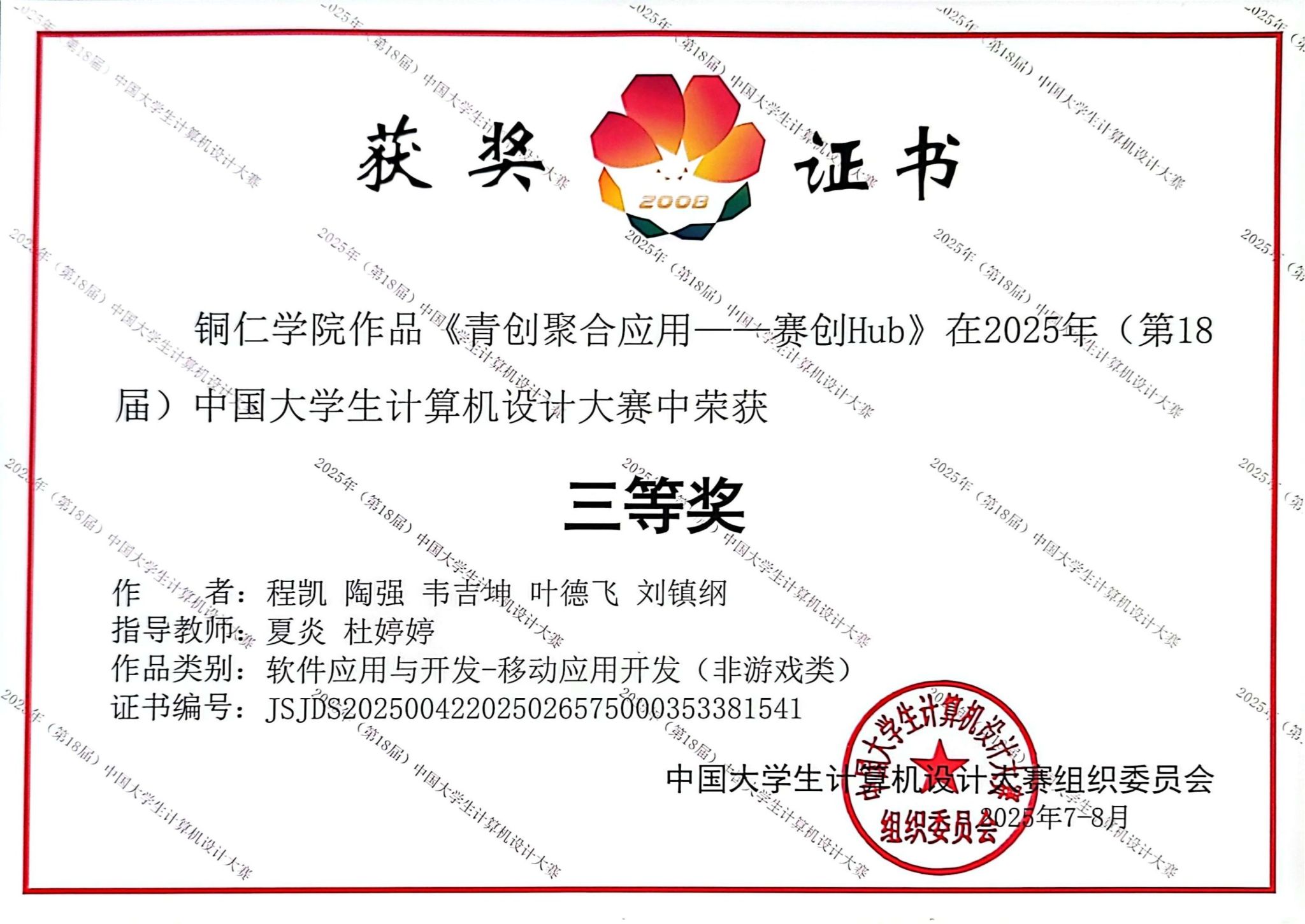 近日,2025年(第18届)中国大学生计算机设计大赛全国总决赛分阶段在南京大学、泰山学院举行。作为国内高校计算机领域极具影响力的A类重要赛事,本届国赛吸引全国各省(市)数百支优秀团队同台竞技,伟德官网大数据学院学子凭借扎实专业功底与创新作品设计脱颖而出,斩获二等奖1项、三等奖1项。