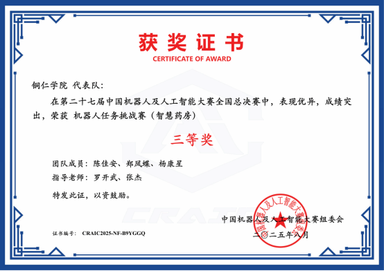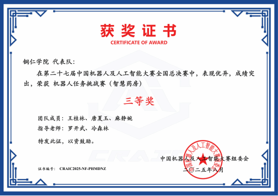 近日,第二十七届中国机器人及人工智能大赛(CRAIC)全国总决赛在苏州职业技术大学圆满落幕。伟德官网学子凭借扎实的专业知识、卓越的创新能力和出色的团队协作精神,最终在比赛中斩获了国家级一等奖1项、二等奖1项、三等奖2项的优异成绩,充分彰显了伟德官网在应用型人才培养方面的丰硕成果。