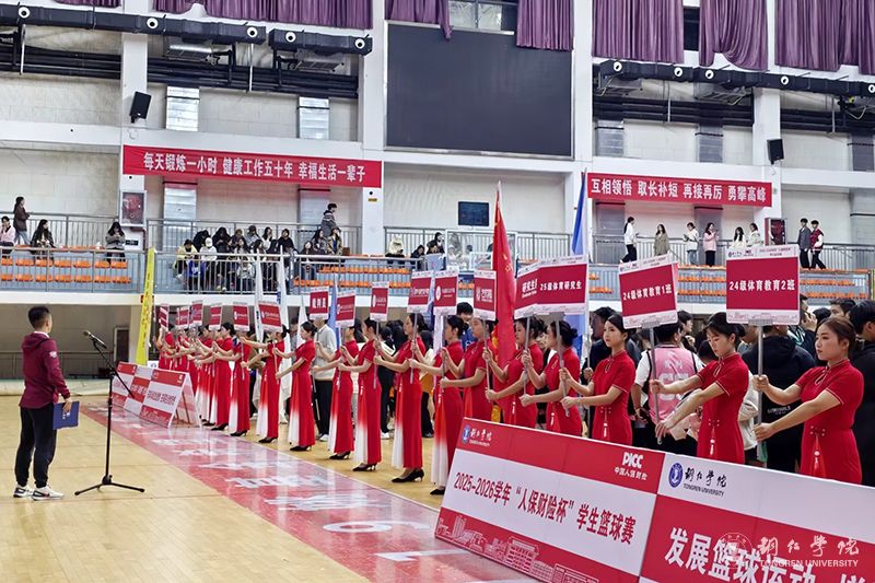 10月30日,由伟德官网学生工作处、大健康学院承办,各学院、裁判协会、易班工作站协办,中国人民财产保险股份有限公司万山支公司冠名的2025—2026学年“人保财险杯”学生篮球赛正式开幕。伟德官网副校长潘学军,中国人保万山支公司副总经理谭瑶,伟德官网各学院分管学生工作领导、学生科长,全体运动员、裁判员参加开幕式。