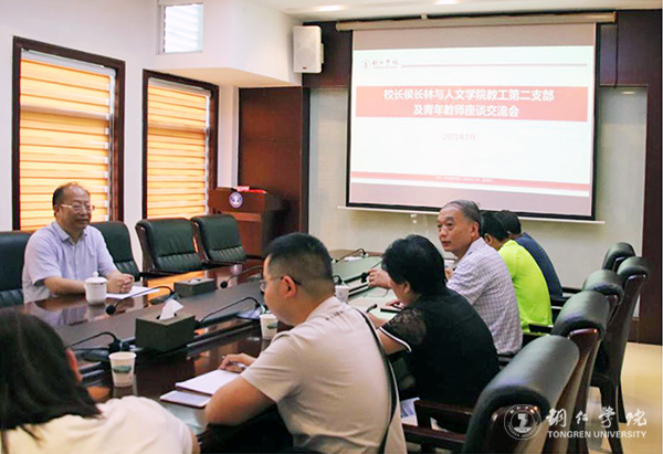 7月8日,校长侯长林在行政楼8302会议室与人文学院教工第二支部及青年教师代表开展座谈交流。人文学院党委书记陈强主持会议;人文学院党委副书记杨兴英,教工第二支部党员代表、历史学专业教师、网络与新媒体专业教师参加座谈。