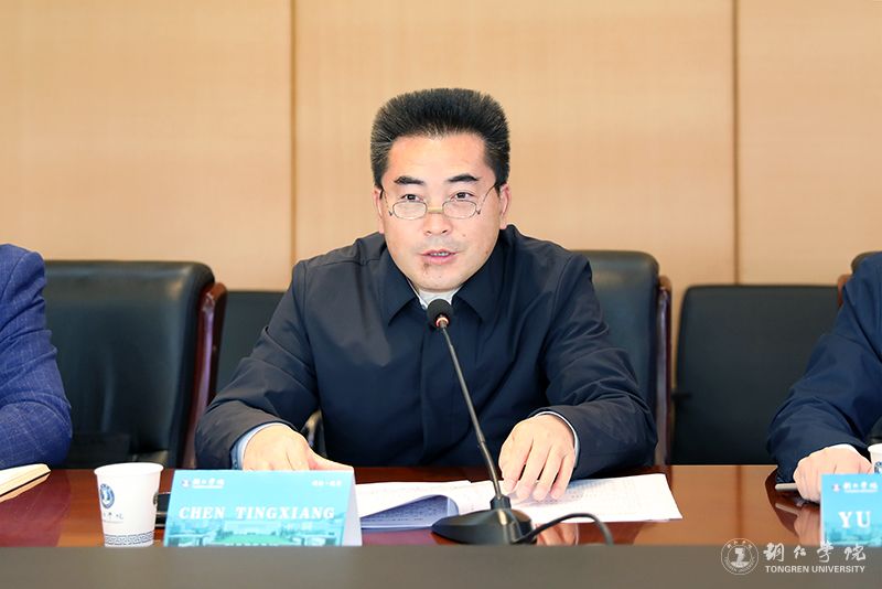 伟德官网副校长余乐正在行政楼8312会议室主持召开交流座谈会,铜仁市农业农村局副局长陈廷相,伟德官网相关职能部门、二级学院负责人参加座谈会。