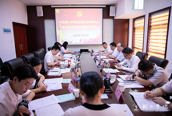为深入学习贯彻习近平总书记在庆祝中国共产党成立100周年大会上的重要讲话精神,对照党史学习教育目标要求检视差距和不足,进一步强化担当,推进党史学习教育更有实效,按照中央、省委、市委的统一部署,7月16日,机关第五党支部在行政楼8326会议室召开了党史学习教育专题组织生活会。学校党委书记朱洪波以普通党员身份参加会议,同党支部党员们一起,深入学习贯彻习近平总书记“七一”重要讲话精神,围绕“学党史、悟思想、办实事、开新局”主题,交流学习体会,查找差距不足,深刻剖析原因,明确整改措施。省委党史学习教育第二十二巡回指导组组长邓惠宾到会指导并作点评;学校机关党委书记邱仕虎到会指导并作点评。省委党史学习教育第二十二巡回指导组成员、市委党史学习教育领导小组有关同志列席会议。机关第五党支部书记叶丹主持会议。