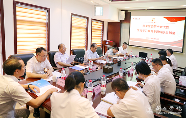 为认真学习贯彻习近平总书记在庆祝中国共产党成立100周年大会上的重要讲话精神,坚持把学深悟透与推动工作相结合,切实推动全校师生党员学习讲话精神往深里走、往实里走,提高学校基层党的政治生活质量,按照中央、省委、市委、校党委统一部署,7月16日下午,机关第十六党支部在行政楼8302会议室召开了党史学习教育专题组织生活会。校长侯长林以普通党员身份参加会议,与党支部全体党员一起学习贯彻习近平总书记“七一”重要讲话精神,紧紧围绕“学党史、悟思想、办实事、开新局”主题,认真贯彻“学史明理、学史增信、学史崇德、学史力行”要求,交流学习体会,查找差距不足,明确努力方向。省委党史学习教育第二十二巡回指导组组长邓惠宾到会指导并作点评;学校纪委监察室主任王劲松到会指导并作点评。省委党史学习教育第二十二巡回指导组成员、市委党史学习教育领导小组有关同志列席会议。会议由机关第十六党支部书记张杰主持。