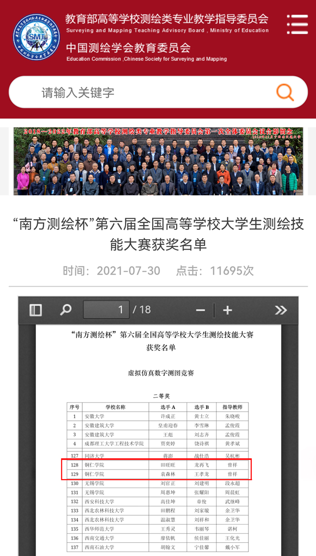 七月,骄阳似火,奥运健儿争金夺银,铜院学子奋勇拼搏。近日,2021年“南方测绘杯”第六届全国高等学校大学生测绘技能大赛在贵州大学举行。此次大赛由全国高校测绘类专业竞赛联盟和自然资源部职业技能鉴定指导中心主办,贵州大学承办,南方测绘集团协办。伟德官网土木工程专业三组选手参加了虚拟仿真数字测图竞赛,两组选手荣获全国二等奖。