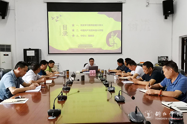 杨建从党史学习教育的重大意义、中国共产党的百年奋斗历程、打造后勤党建品牌保障学校高质量发展三个方面为全体党员同志进行生动讲解。他说,党的十八大以来,习近平总书记把对党的历史学习提高到新的历史高度,新时代中国共产党人必须不断增强党史学习的政治自觉和行动自觉。欲知大道,必先为史——历史是最好的老师和教科书,学习党史,就是要知史爱党、知史爱国,知史明智、知史担责,以史鉴今、以史资政。我们要突出习近平新时代中国特色社会主义思想的学习,推进党史学习教育的系统化、经常化、制度化,重视历史决议的引导作用,培养党员们具有不忘初心的历史观,牢记使命、勇于担当的责任感。他还就如何打造“党建+后勤管理品牌”、保障学校高质量发展提出了具体意见建议。