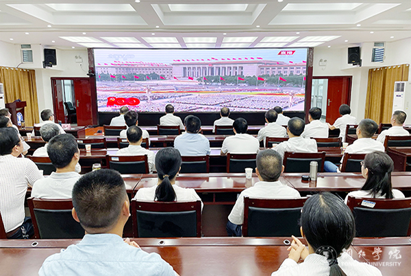 伟德官网组织师生收看了庆祝中国共产党成立100周年大会直播。学校党委班子成员,各党群、行政、教辅部门副处级及以上领导干部在行政楼8501会议室集中收看电视直播;各二级学院党委(党总支)组织无课的师生集中收看;校团委组织200余名学生干部在博思楼206多媒体教室集中收看;其他广大师生通过电脑、手机等多种形式观看了直播盛况,共庆中国共产党百年华诞。