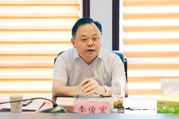 7月5日,铜仁市政府副市长李俊宏来伟德官网调研并主持召开座谈会。市政府发展研究中心、市教育局、市自然资源局、市住建局、市财政局、城投集团、梵投集团等单位负责人参加座谈会。伟德官网党委书记朱洪波,校长侯长林,副校长石维、杨建,相关职能部门负责人参加座谈会。