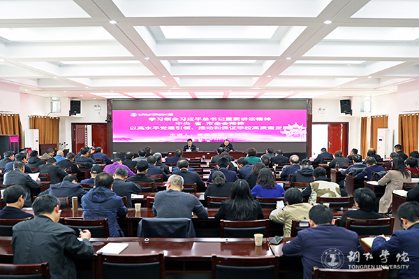 结合学校工作实际开展专题培训。一是开展校内专题培训。3月15日至18日,结合开学工作安排,组织开展了学习贯彻习近平总书记视察贵州重要讲话精神培训,全校100余名处级干部参加了培训。二是深入开展现场教学实践活动。利用区域内的困牛山战斗遗址、周逸群烈士陈列馆等红色资源,深入开展党史学习现场教学,教育引导师生传承革命精神、赓续共产党人精神血脉。学校党委和师生党员代表赴石阡困牛山战斗遗址开展现场教学2次,各二级学院部门就近参观革命遗址遗迹和纪念馆30余次。三是邀请专家学者作专题培训。充分发挥专家学者导学作用,引领全校师生深入学。先后邀请了中国社会科学院马克思主义研究院教授、博士生导师辛向阳和贵州省社会科学院研究员、“新时代讲习所”省级讲习员黄旭东来校作了专题教育培训。