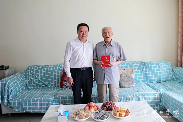 6月18日,市委常委、市委宣传部部长、市委统战部部长、市委教育工委书记商友江到伟德官网开展“七一”走访慰问,并为慰问对象颁发“光荣在党50年”纪念章。伟德官网党委副书记代亮陪同慰问。