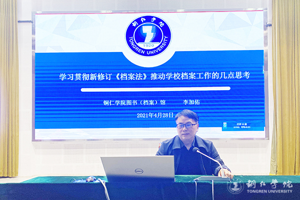 会上,档案馆副馆长李加佑紧紧围绕新修订的《中华人民共和国档案法》,从增强档案意识,突出重点、服务大局,切实加强领导、压紧压实责任,不断推动学校档案工作健康发展等方面进行了阐述,并对后期档案工作提升出了建议和提示,强调各学院、部门要坚持以问题为导向,切实抓细抓实档案宣传以及本部门档案收集、整理和移交工作。档案馆编研室主任胡丽娟通过展示照片、文件、实物等档案,生动形象地给大家讲解了档案的重要性和归档的必要性。吴昌树强调,学校的档案是由每一个部门产生的,做好档案工作需要我们各部门共同努力,为推进学校全面建成特色鲜明的高水平应用型大学作出应有贡献。