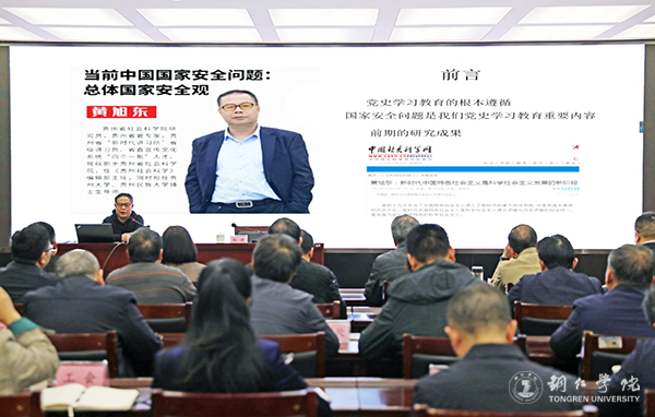 黄旭东说,党史是我们党革命、建设、改革开放的理论和实践,是我们党治国理政的理论和实践。在新的历史条件下习近平总书记提出要从宏大史观看党史,注重历史的连续性和整体性,拓展了党史研究的内容和主题。学习党史,要结合“四史”学习,要具备宏大历史视野。国家安全问题体现了我们党治国理政认识和实践的深化发展,反映了中国共产党历史、中华人民共和国发展史、改革开放史和社会主义发展史的重大主题,是我们党史学习教育重要内容。