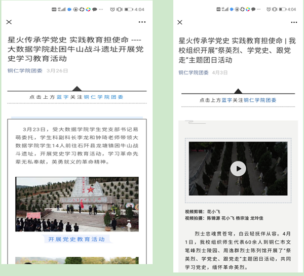 为扎实开展大学生党史学习教育,用好新媒体平台,以青年大学生喜闻乐见的形式提升党史学习教育成效,学校团委认真制定党史学习教育方案,围绕青年大学生需求,突出青年大学生特点,通过“创作式”“竞赛式”“沉浸式”“教学式”的“四轮驱动”模式,扎实抓好青年大学生党史学习教育,引导广大团员青年学好党史,打造有广度、有宽度、有温度、有深度的党史学习教育,让红色基因、革命薪火代代相传。