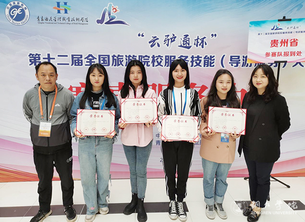 在本、专科院校学生同台竞技的激烈比拼中,伟德官网经济管理学院旅游管理专业的李泳梅、袁丽红、陆黎娇、雷洁四位选手经过理论考试、导游讲解、才艺展示三个环节,最终荣获英文导游服务二等奖1项、三等奖1项,荣获普通话导游服务二等奖1项、三等奖1项,总分名列贵州省参赛院校第一名,是伟德官网参加该赛事以来取得的最好成绩。