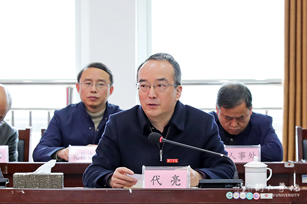 会上,代亮代表学校作工作汇报。代亮指出,2020年,学校坚持以习近平新时代中国特色社会主义思想为指导,全面贯彻党的十九大精神和省委市委决策部署,坚持党的教育方针,贯彻落实全国全省教育大会精神,坚定社会主义办学方向,聚焦立德树人根本任务,统筹抓好疫情防控、脱贫攻坚、新增硕士学位授予单位建设等重点工作,顺利完成了各项工作任务。一是全面加强党的建设,夯实高质量发展政治基础。学校坚持把党的政治建设摆在首位,贯彻落实党委领导下的校长负责制,强化基层党的建设,落实落细“明德印记”思想政治工作体系,牢牢把握意识形态工作主动权,全力做好疫情防控工作,办学100周年主题活动精彩纷呈。二是全面推进内涵建设,抓好高质量发展核心要素。学校新增硕士学位授予单位建设取得了突破,教育教学改革成效显著,科学研究稳中有升,深入推进社会服务工作,深化国际教育交流与合作,加强教师队伍质量提升,加强学生招生就业资助管理工作。三是服务脱贫攻坚大局,推动高质量服务地方发展。学校多形式多举措服务脱贫攻坚,深入推进领办易地扶贫搬迁集中安置点基础教育学校工作。