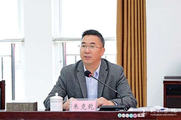 考核组副组长、贵州财经大学党委副书记朱克乾主持反馈会
