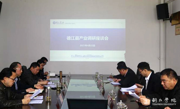 4月22日下午,石维与德江县人民政府常务副县长刘祖辉、县科技局原局长曹永直以及县政府办、县教育局、县农业农村局、县工业和商务局、县自然资源局、绿通公司等部门相关负责人以及乌江学院班子成员召开德江县产业发展调研座谈会。