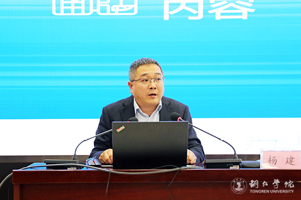 杨建主要围绕“闯新路:坚持‘小而精’办学传统”“开新局:国家及省市‘十四五’规划”“抢新机:学校‘十四五’发展规划”“出新绩:分管工作的思路与举措”四个方面进行阐述。