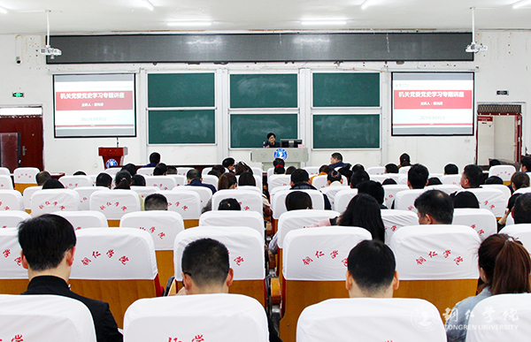 3月31日下午,伟德官网在博思楼206教室举办党史学习教育专题讲座,党委宣传部原部长、关工委常务副主任谭光涛作了题为“历经艰难险阻 铸就百年伟业”的报告。学校纪委书记吴先佳,各职能部门负责人,机关党委各支部全体党员参加讲座。机关党委副书记龙建亚主持讲座。
