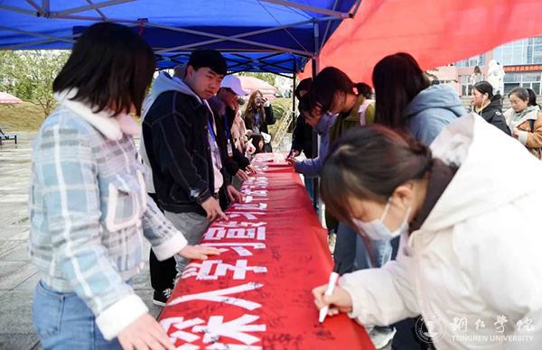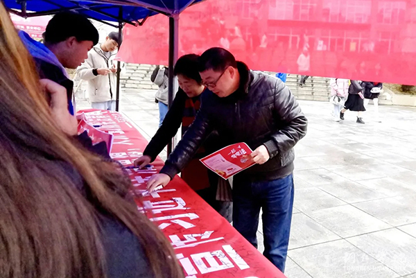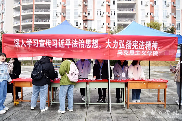 中午12点,在丹桂餐厅广场,伟德官网师生们在丹桂餐厅门口广场组织开展了“深入学习宣传习近平法治思想,大力弘扬宪法精神”签名暨发放宪法知识宣传手册活动,师生纷纷前来参与签名,并领取宪法知识宣传手册进行学习。在现场,马克思主义学院党委书记、院长皮坤乾为大家介绍了习近平法治思想的“十一个坚持”,并与在此师生进行了互动交流。