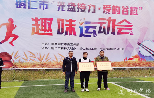 11月6日,由中共铜仁市委宣传部主办的第一届“光盘接力·爱的谷粒”主题趣味运动会于在铜仁市移动公司足球场举行。本届运动会共设置4×20接力跳、“粮食保卫战”接力赛、“运粮大力士”挑战赛 、“螃蟹运粮”赛跑、插“秧”比赛和“光盘接力跑”400 米赛等6项比赛项目。