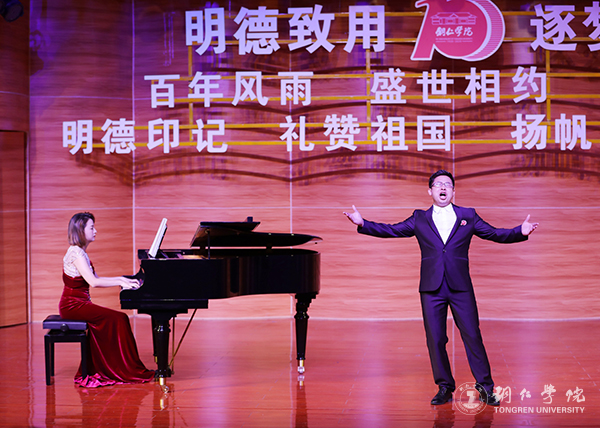 70余载潮起潮落,伟大的祖国始终演奏着时代的最强音;70余载风风雨雨,始终记载着伟大祖国奋斗的足迹。在第二篇章中,二重唱《迎着风浪走》、独唱《驻村干部》等曲目,是对中国人民团结奋进、无私奉献的赞歌,彰显了中国精神与力量,也洋溢着铜院师生对祖国的热爱,展现了铜院人的使命与担当。