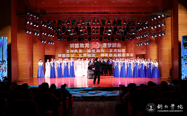 “我和我的祖国,一刻也不能分割。无论我走到哪里,都留下一首赞歌……”音乐会在器乐合奏《我和我的祖国》中拉开序幕,优美的旋律、动人的音符,直击心灵。整台音乐会由“序:我和我的祖国”“第一篇:明德印记·青春中国”“第二篇:全民同心·奋斗中国”“第三篇:跨越发展·奋进新时代”和“尾声:扬帆新起航”组成。音乐会节目形式丰富、异彩纷呈,让观众们沉浸于音乐海洋,为大家带来一场视听盛宴。