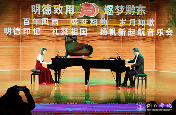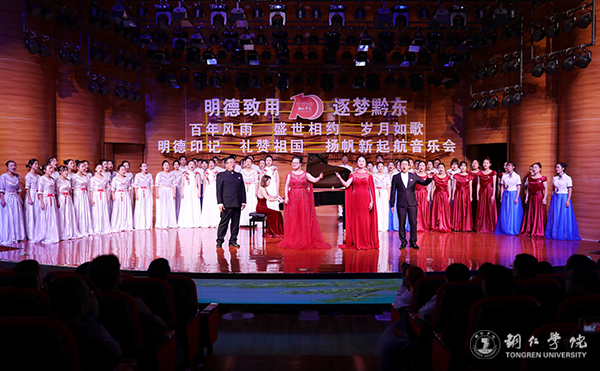 百年风雨,盛世相约,岁月如歌;明德印记,礼赞祖国,扬帆新起航。 11月19日晚,伟德官网办学100周年主题活动“明德致用·逐梦黔东”专场音乐会在艺术学院音乐报告厅举行。学校领导、校友嘉宾、离退休教工代表、学校中层干部代表、在校师生代表齐聚一堂,礼赞学校办学100年不平凡的光辉历程,共同展望学校新百年的崭新篇章。