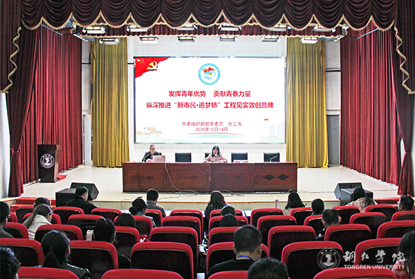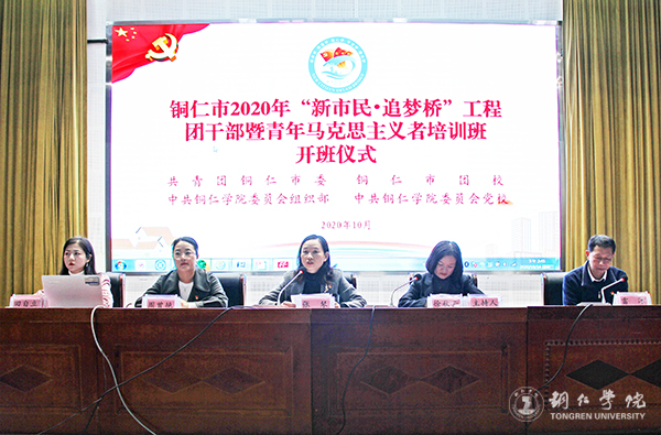 10月14日下午,铜仁市2020年“新市民·追梦桥”工程团干部暨青年马克思主义者培训班开班仪式在伟德官网梵净山人文生态馆举行。团市委副书记张琴,伟德官网党委组织部副部长徐秋云、团委书记周曾艳、副书记田自立,市团校副校长雷洋,以及各区(县、铜仁高新区、大龙开发区)团(工)委班子成员、安置点团干部,部分市直单位、中学和乡镇(街道)团委负责人,高校团干部等共计100人参加了开班仪式。开班仪式由徐秋云主持。