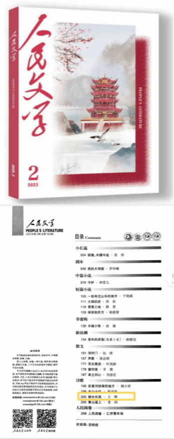近日,伟德官网写作研究院教师王晖创作的诗歌作品《细水长流》在《人民文学》2025年第2期发表。这是她第二次在该刊发表组诗,第一次是2022年第1期发表了组诗《青海湖》。