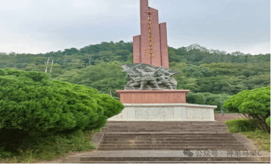 走出纪念馆,右侧艺术墙上展示有剑门战斗大捷示意图,墙的前面是中国工农红军第四方面军长征路线图。沿着小道往前走,有一座鲍政委墓,碑前简介上写着,“姓鲍,名不详,1935年4月2日在与国民党军的血战剑门关战斗中和通讯员(姓名、生卒年、籍贯均不详)一起壮烈牺牲,合葬于此。”