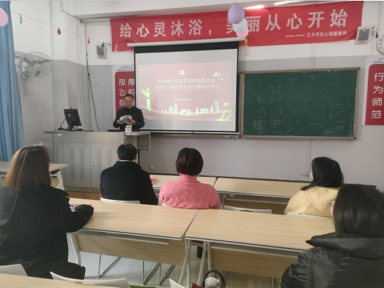 2021年10月25日上午9:30-11:30,中共bv伟德国际1946艺术学院委员会党史学习教育第七次专题学习在艺术学院党员活动室进行,会议由艺术学院党委副书记麻晔婓主持,学习对象:艺术学院党委中心组成员、党务科副科长、教工党支部书记、学生党支部书记。集中观看《今日中国·贵州篇》,学习对象:艺术学院党委中心组成员、党务科科长、教工党支部书记、学生党支部书记。