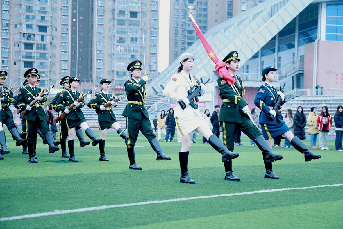清晨的校园,微风轻拂,阳光洒在田径场上,为升旗仪式增添了一份庄重与神圣。仪式伊始,国旗护卫队的同学们迈着整齐划一、坚定有力的步伐,护送着鲜艳的五星红旗走向旗杆。随着雄壮激昂的国歌奏响,五星红旗在晨风中冉冉升起,全体师生庄严肃立,目光紧紧跟随着国旗,齐声高唱国歌,用最饱满的热情和最真挚的情感表达对祖国的热爱与崇敬。