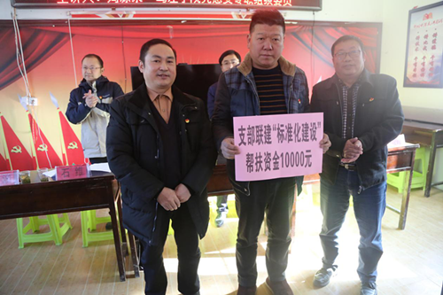 接着举行了“支部联建”签字仪式,同时对南坪村的党支部标准化建设捐赠帮扶资金1万元;捐赠标准化建设“图书角”党务书籍30册;对2名困难党员进行慰问,分别送上500元慰问金;为10户困难群众捐助大米、菜油等价值1400元的生活物资。