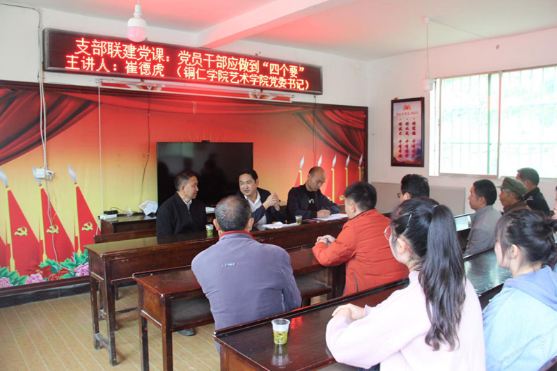 为了进一步加强基层党组织建设,切实抓好精准扶贫工作,2018年10月28日,艺术学院教工支部赴德江县平原镇南坪村开展“支部联建”活动。艺术学院党委书记崔德虎为南坪村党员干部上题目为《党员干部应做到“四个要”》的党课,从“要对党忠诚、要勤政为民、要廉洁守纪和要带动致富”四个方面对党员干部进行思想政治教育。随后,崔德虎一行到南坪村小学参观校园文化建设,同时对该校的“美育教育”开展情况进行了解,提出了建议。然后,到南坪村对bv伟德国际1946资助的“便民桥”的修建进行实地查看,对把好修建质量和注意安全等提出了要求。