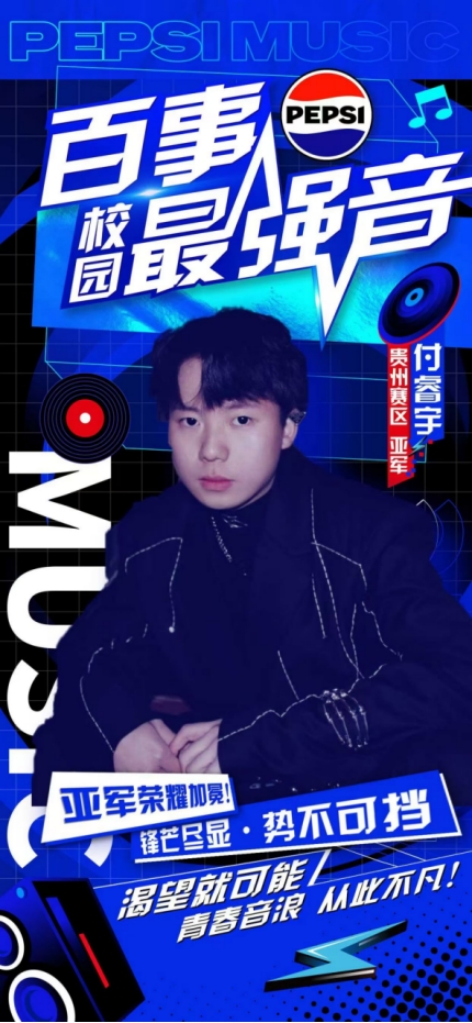 据悉,“百事校园最强音”是由百事公司主办的全国性校园歌手选拔赛事活动,本次比赛汇聚全省各高校优秀学生,竞争激烈。付睿宇凭借扎实的音乐功底、出色的表演技巧及独特的艺术表现力,在众多参赛者中脱颖而出,斩获贵州赛区亚军。