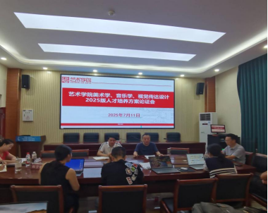 2025年7月11日,艺术学院美术学、音乐学、视觉传达设计三个专业2025版人才培养方案论证大会在会议室召开。院党委徐美书记、麻晔斐副书记、龙庆华副院长、谢云中副院长、各专业负责人以及艺术学院教学指导委员会全体成员参加了此次大会。此次人才培养方案论证会 旨在帮助各专业更好的修订2025版人才培养方案、根据社会需求提升人才培养质量。