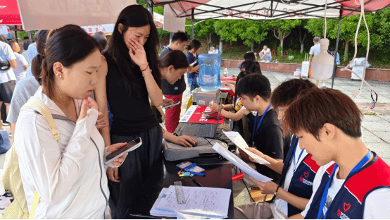 志愿者们为新生办理报到手续