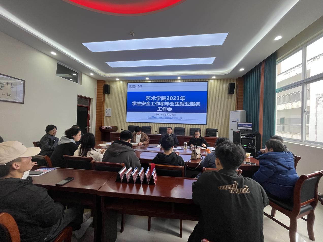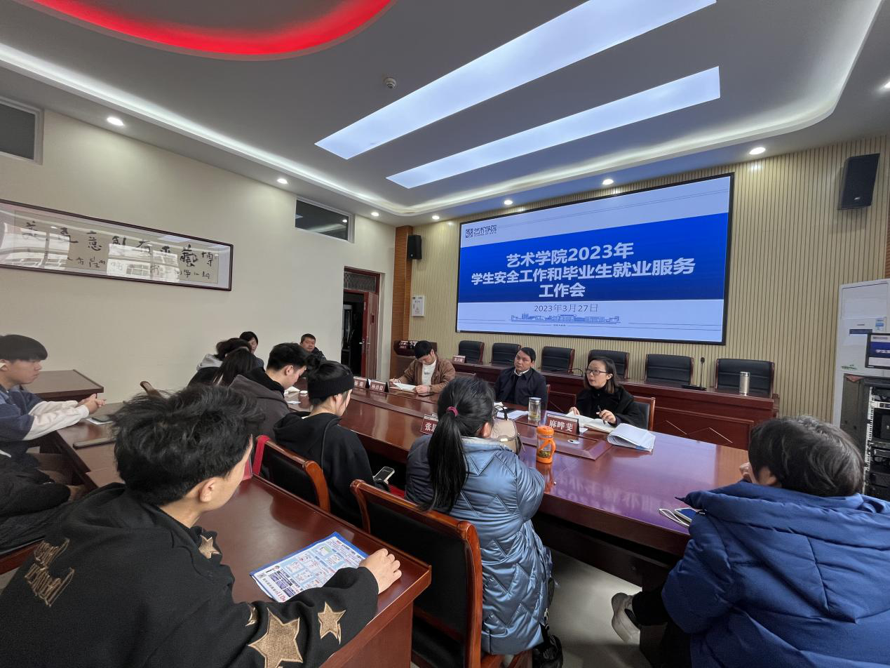 3月27日下午,我院在美术楼会议室召开2023年学生安全工作和毕业生就业服务工作会。艺术学院党委书记徐美、党委副书记麻晔斐出席会议,学生发展科科长杨治毅,全院班主任辅导员及班长参加会议。