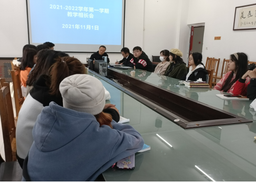 为全面提升我院教学质量,促进课程建设和教学建设,使我院学子能够全面发展,艺术学院于11月1日中午,在美术楼201会议室召开2021-2022年第一学期教学相长会。艺术学院院长李洁、艺术学院副院长龙庆华、教务科科长张少涛、教务科刘忠楠、黄莉出席本次会议,各班班长、学习委员和学生代表参加,会议由张少涛主持。
