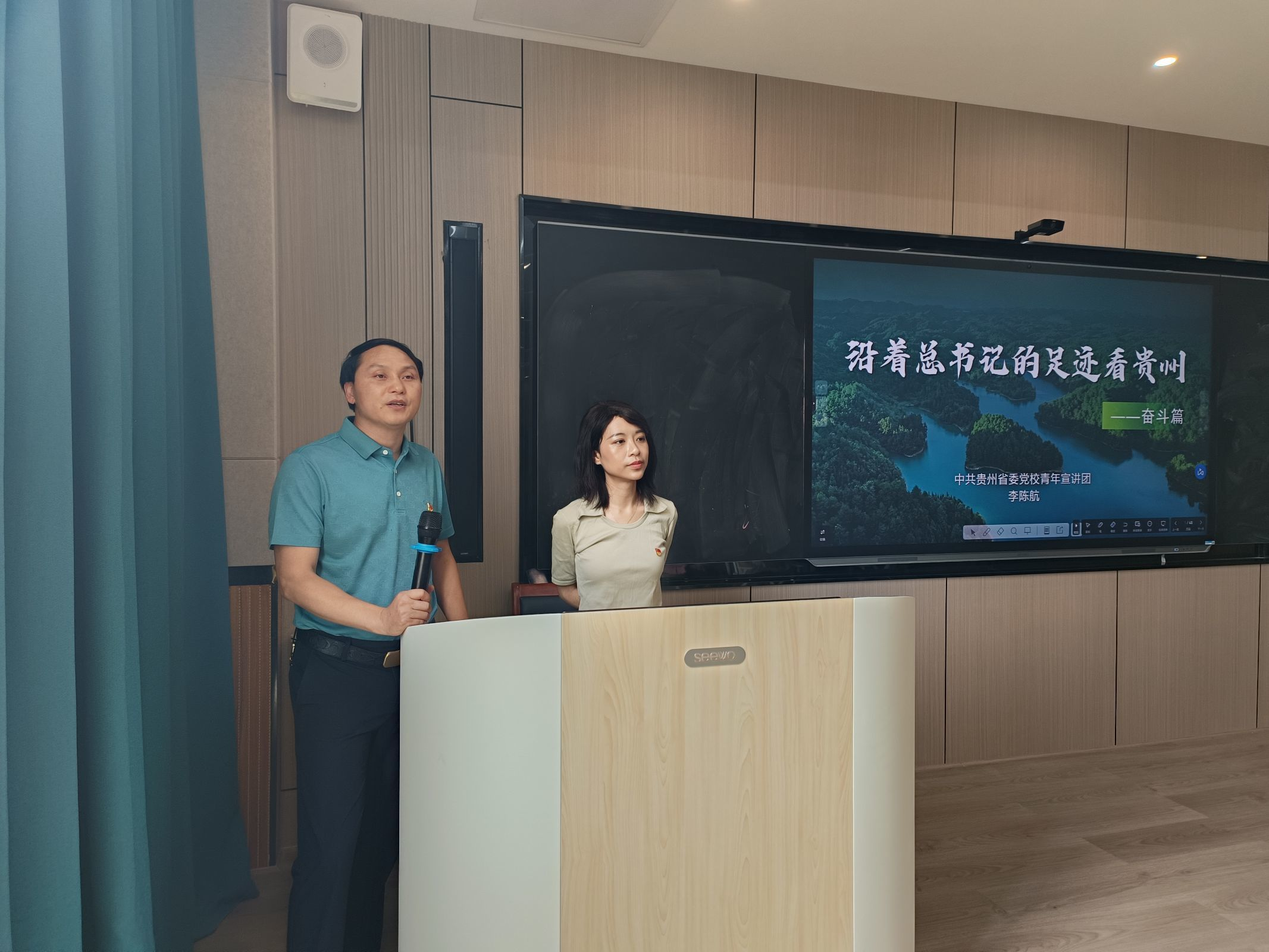 6月8日下午,我院在美术楼113教室开展“沿着总书记的足迹看贵州”专题宣讲活动。本次宣讲由中共贵州省委党校讲师李陈航主讲,院部分师生代表50余人参加聆听,讲座由院党委书记徐美主持。