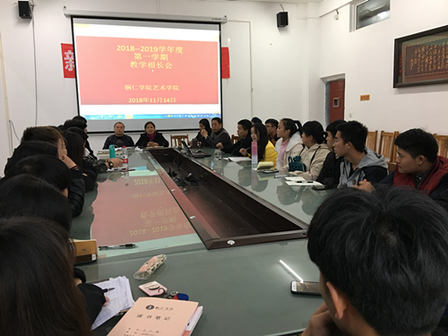 2018年11月14日下午,艺术学院教学相长会在美术楼会议室召开,会议由艺术学院院长李洁主持,教务科科长戴腾、美术系主任龙庆华、音乐系主任罗亚琴、教学秘书徐秋逸参加会议并讲话。