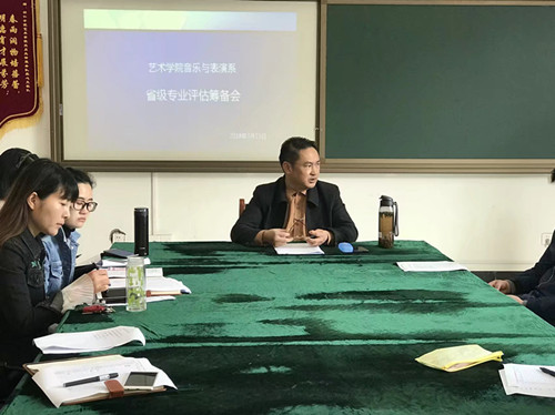 3月15日早上十点,音乐与表演系在院会议室召开学省级专业评估筹备会议,艺术学院党委书记崔德虎、音乐与表演系系主任罗亚琴、教研室主任及学术带头人参加了此次会议,本次会议由音乐与表演系系主任罗亚琴主持。会上,音乐与表演系系主任罗亚琴首先发言。她就我系师生比、硕博比、职称比进行了详细的分析,并就我系的专业评估的专业教师进行了严格的评选,同时也安排了近期的评估准备工作。其次,艺术学院党委书记崔德虎对每位参会的教师提出要求。一是,认真对待评估工作,积极配合系主任完成筹备工作;二是,要求仔细的审核资料,达到精益求精。