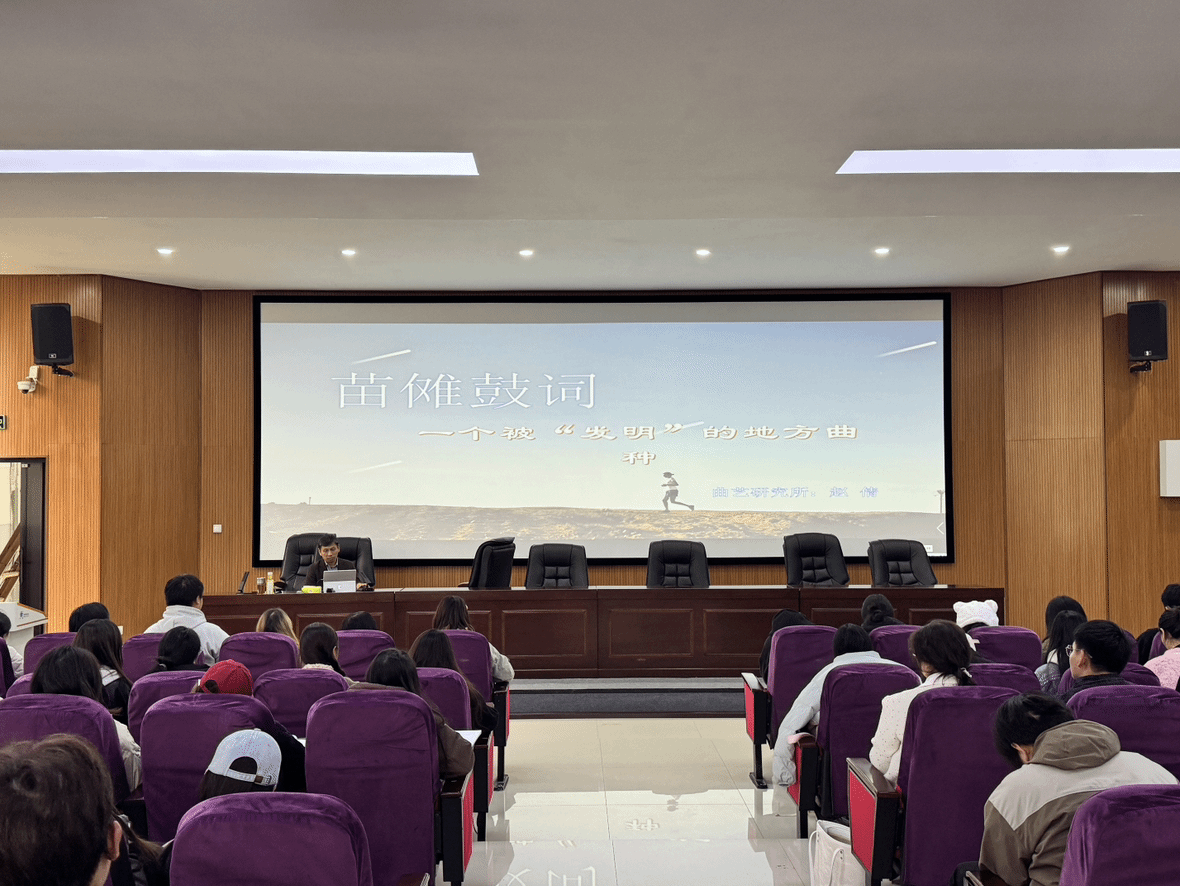 11月22日下午,中国艺术研究院博士、研究院赵倩,应邀来为我院开展了《苗傩鼓词:一个被“发明”的地方曲种》专题讲座。讲座在博思楼101举行,党委书记徐美主持,全院师生200余人现场倾听。