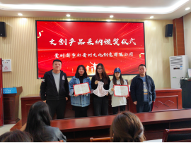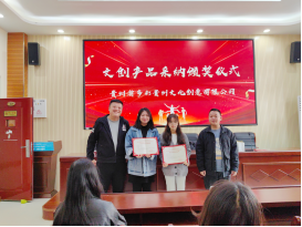 10月24日,贵州省多彩贵州文化创意有限公司领导莅临我院,为23级视觉传达设计专业王雪英、包佳怡、余典娇三位同学及指导老师邹莹虹颁奖。