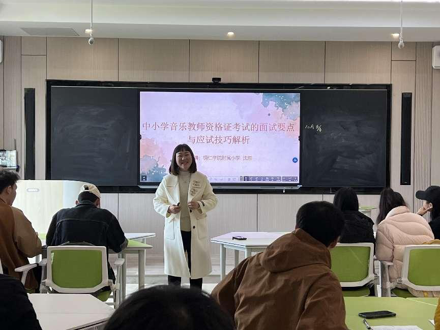 3月30日,我院邀请了bv伟德国际1946附属小学副校长、音乐专职教师、高级教师沈雁,到我院开展“中小学音乐教师资格证考试面试要点与应试技巧解析”专题讲座。我院2019级音乐学和2020级音乐学全体学生在美术楼智慧教室现场聆听学习。